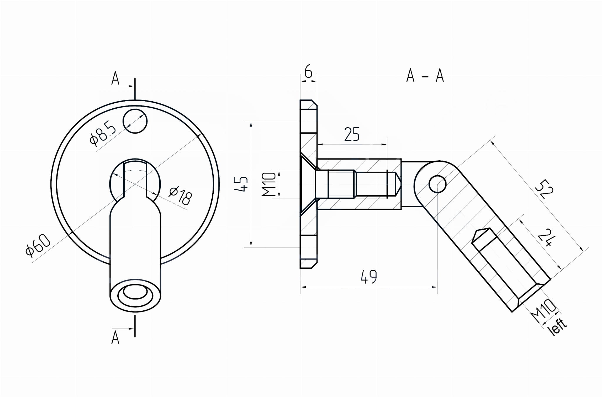 - Montage à la surface de montage sur un support disque Ø60mm avec deux trous Ø 8,5mm