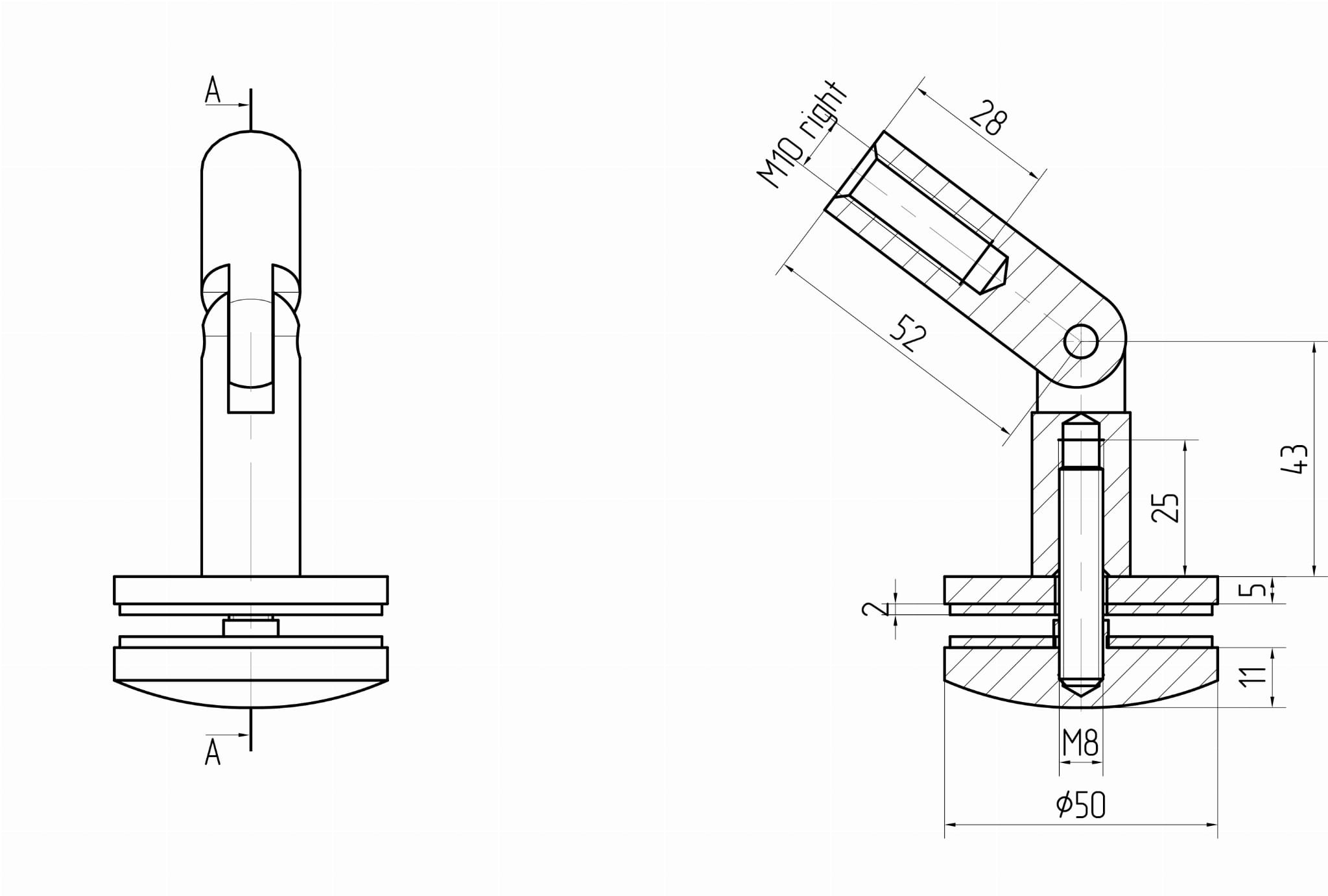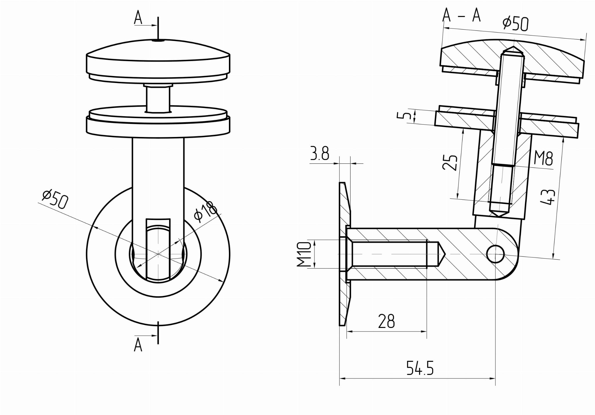 CN fixation panneau en verre SINGLE - A Ø 50mm, AISI 304, brossé