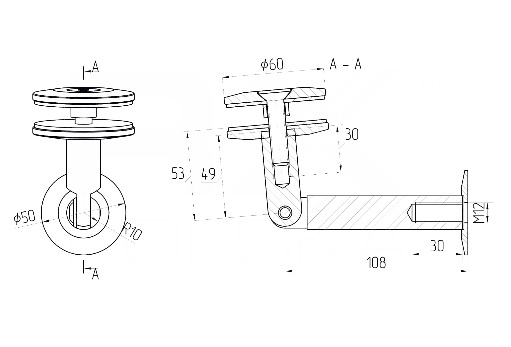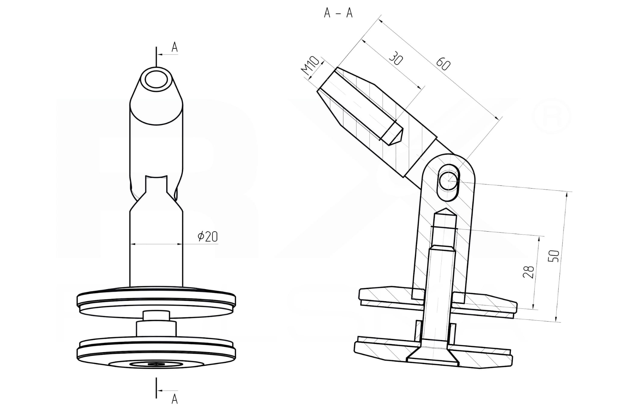 CNP Fixation Marquise Ø 60mm + VERRE 66.3 VSG/ESG 1500x900mm, AISI 304, Brossé
