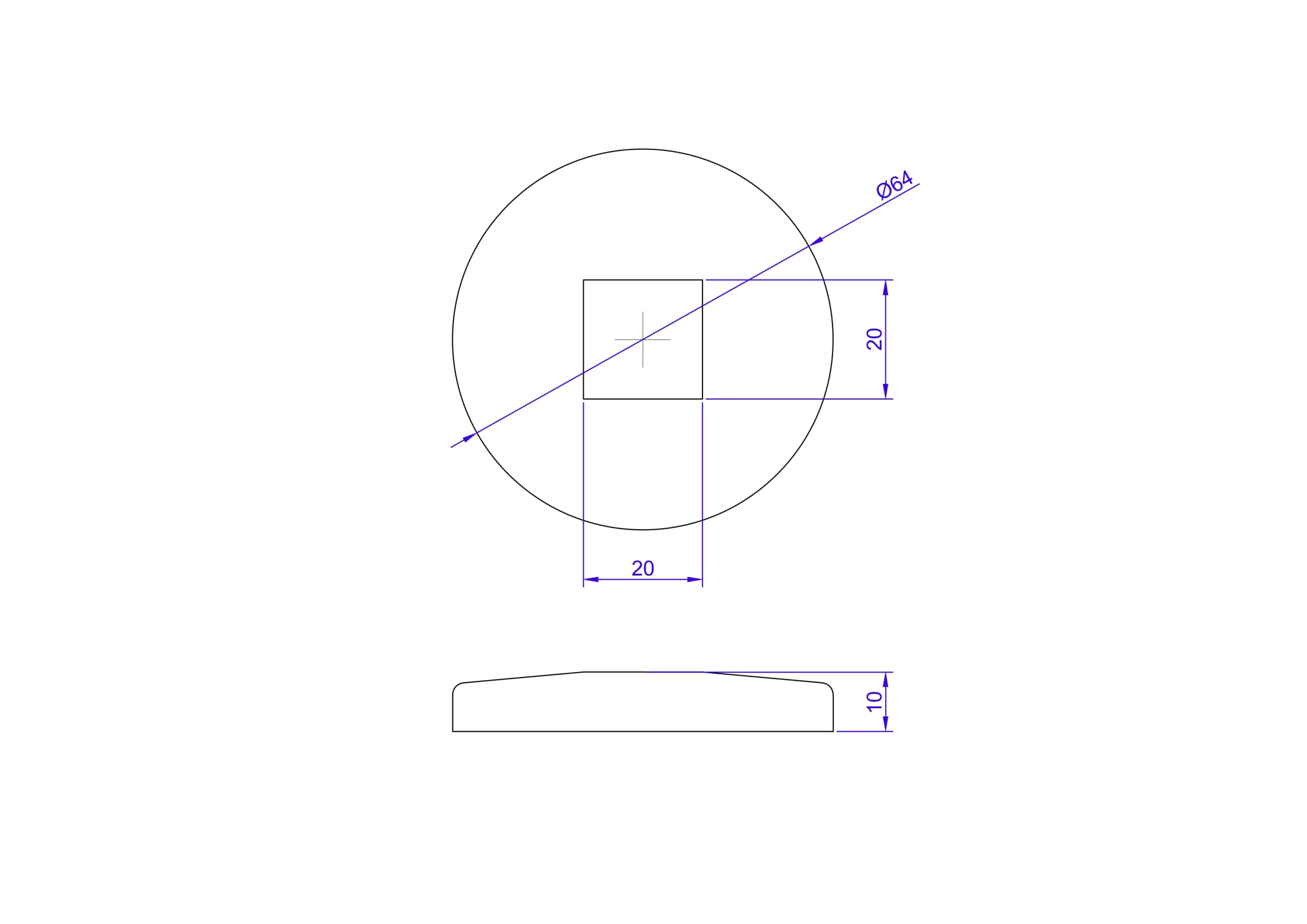 Cache embase 64mm pour profile 20x20 mm, AISI 304, brossé