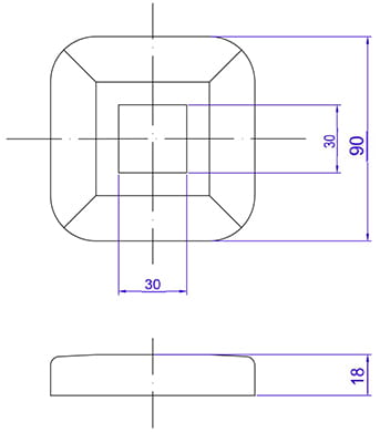 Cache platine 90x90 mm pour profile 30x30 mm, AISI 304, Polie
