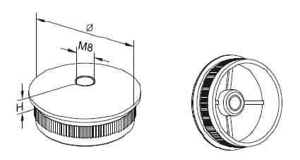 Embout bombé à frapper dans tube 48,3 x 2.0mm avec filetage M8, AISI 304, Polie