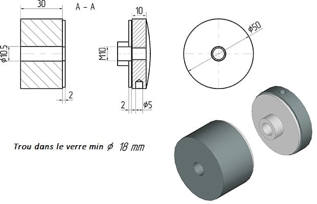 Perçage minimal dans le verre ø 18mm