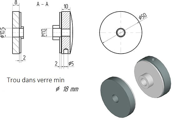 Perçage minimal dans le verre ø 18mm