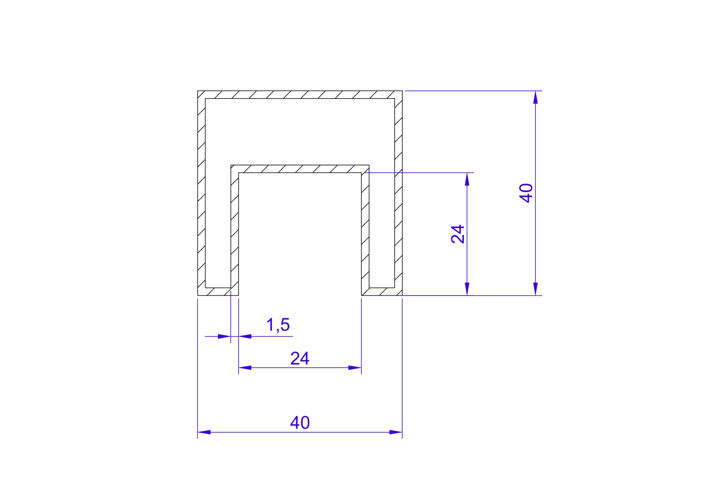 Main courante pour verre , 40x40, AISI 316, Brossée 5m
