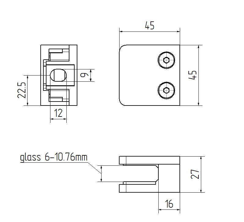 Pince pour verre 45x45mm, ZAMAK, RAL 9005