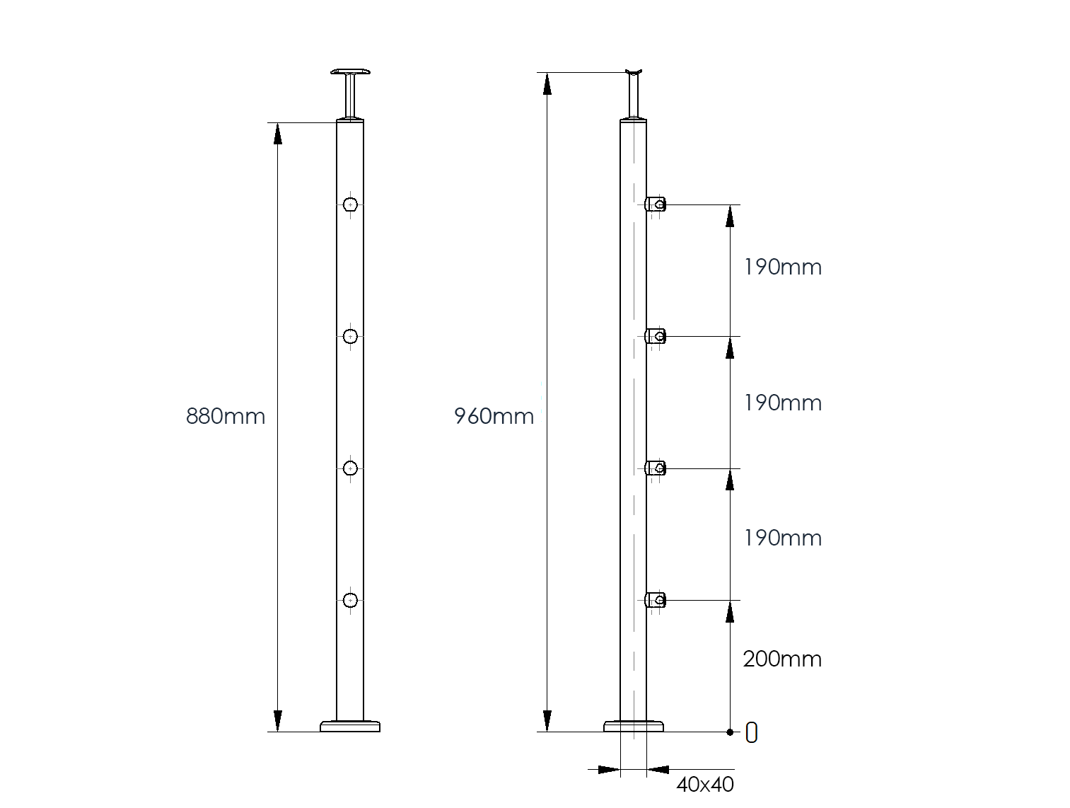 Base de poteau – 85x85x4mm 4x trous de montage pour tige max M10