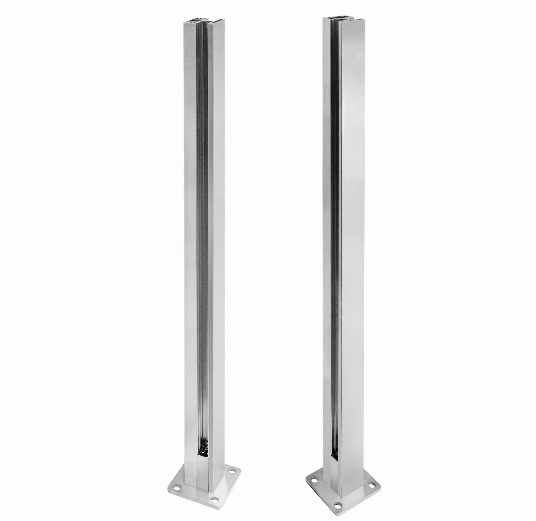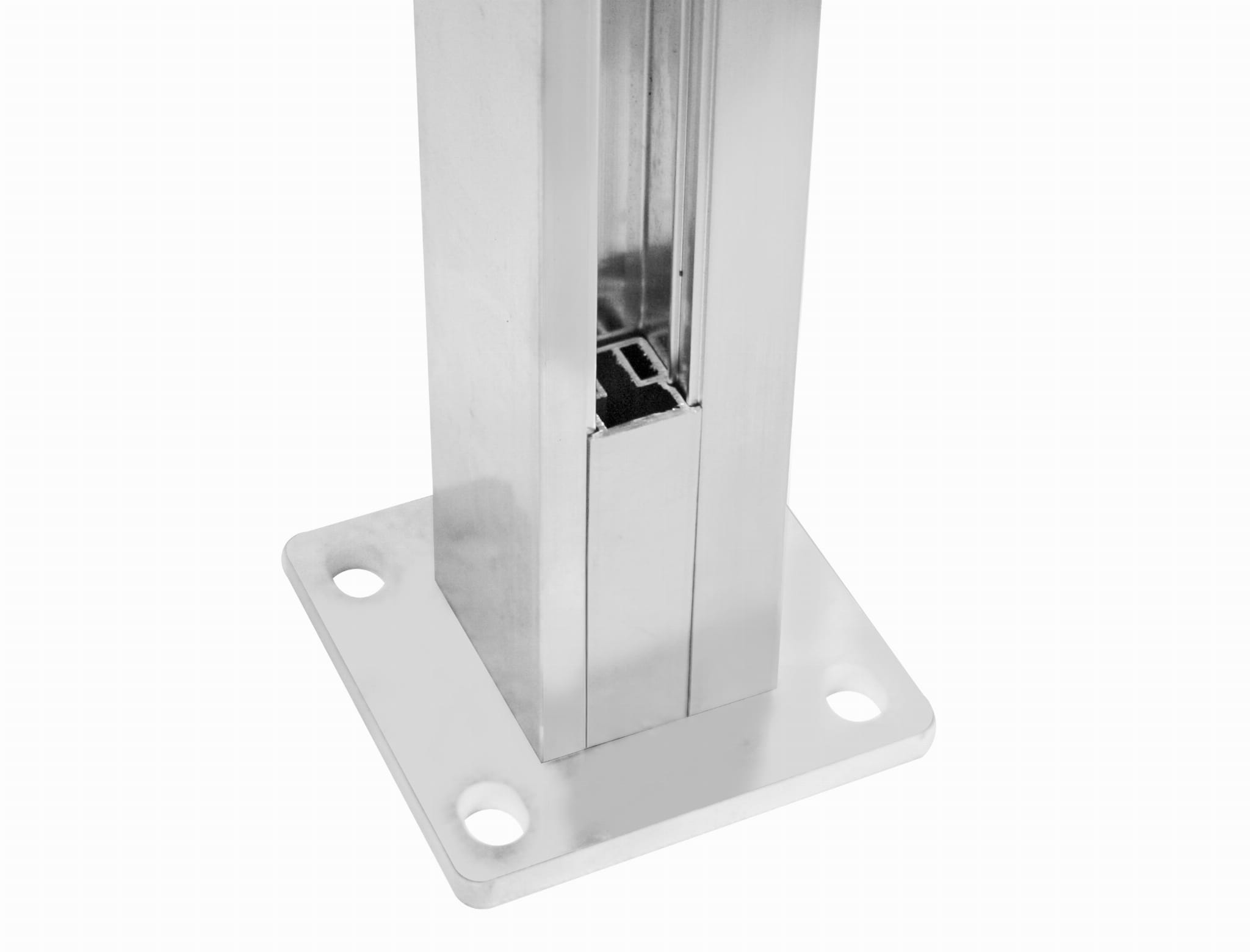 - Poteau (profil + base (épaisseur 8mm) vissés ensemble) + cache (épaisseur 2mm)