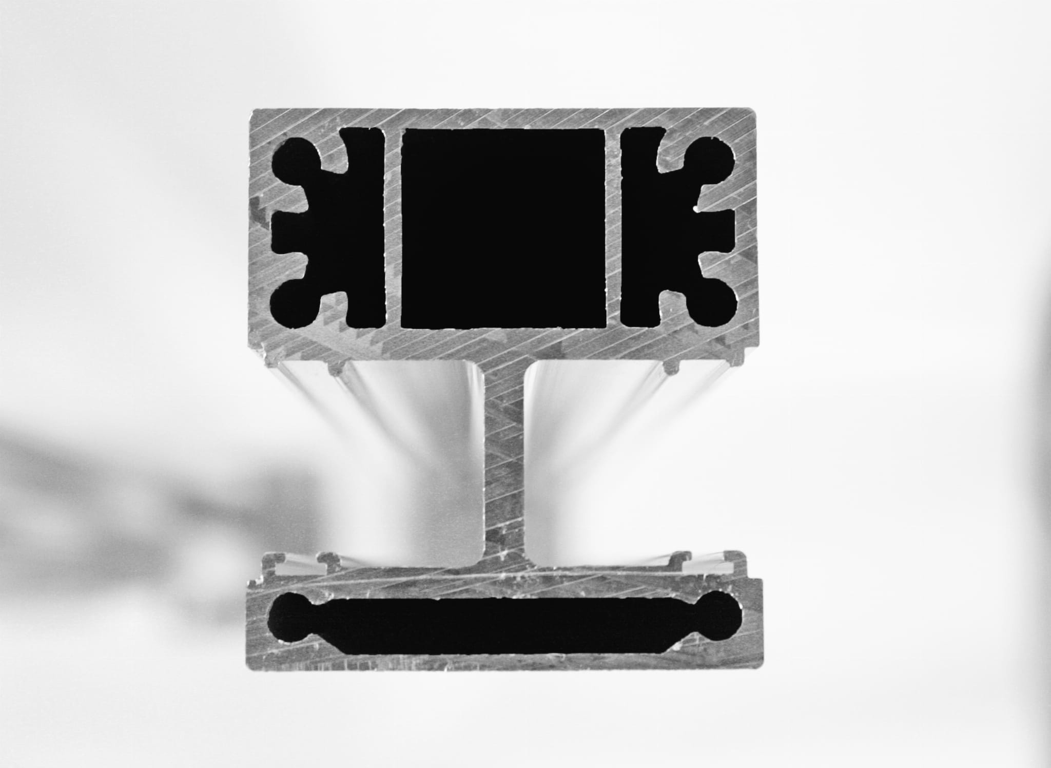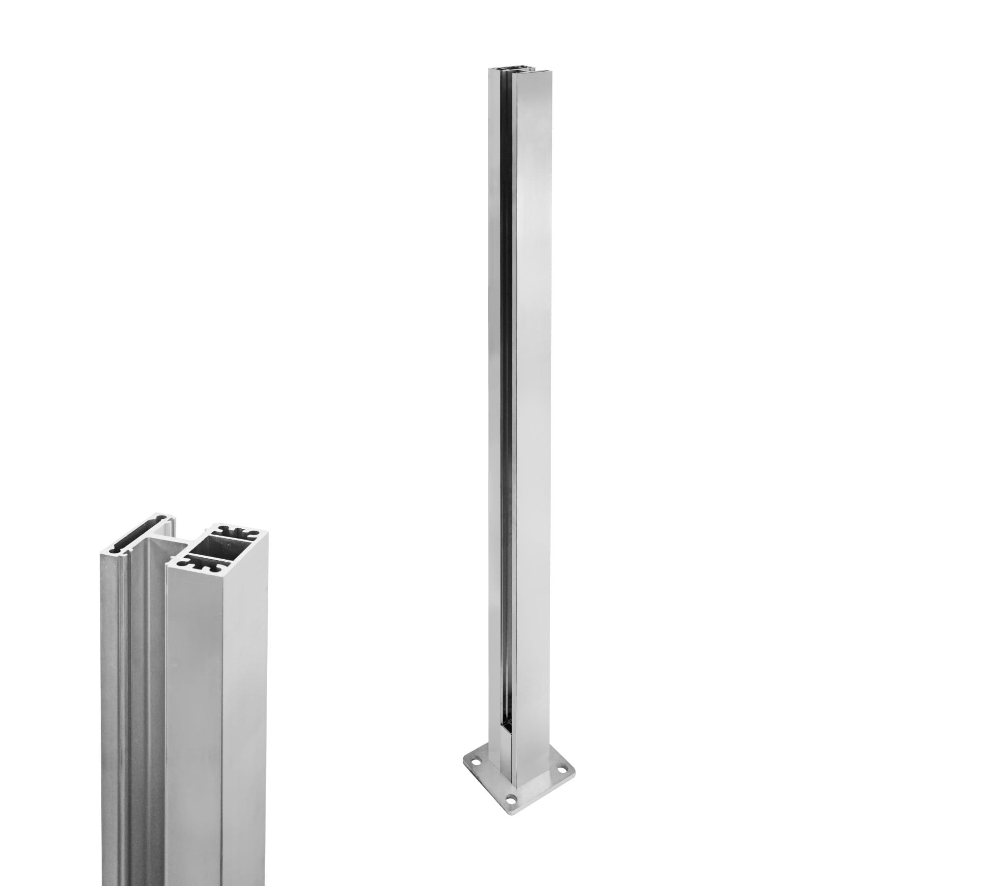 Le poteau est réalisé en profilé d'aluminium 55x50mm, surface brute (destiné au thermolaquage).