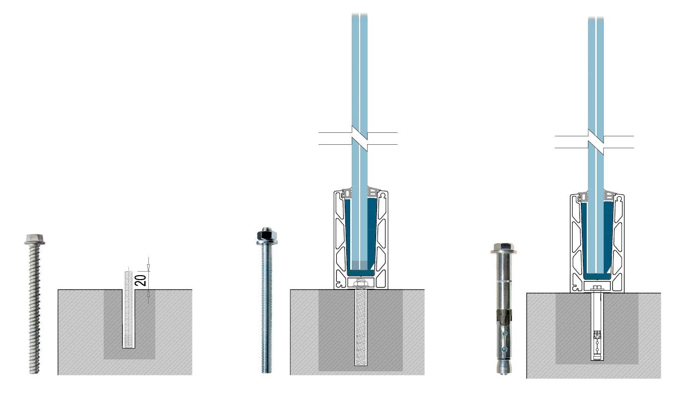 Montage de Profil Fixation par le haut U monté au sol