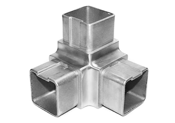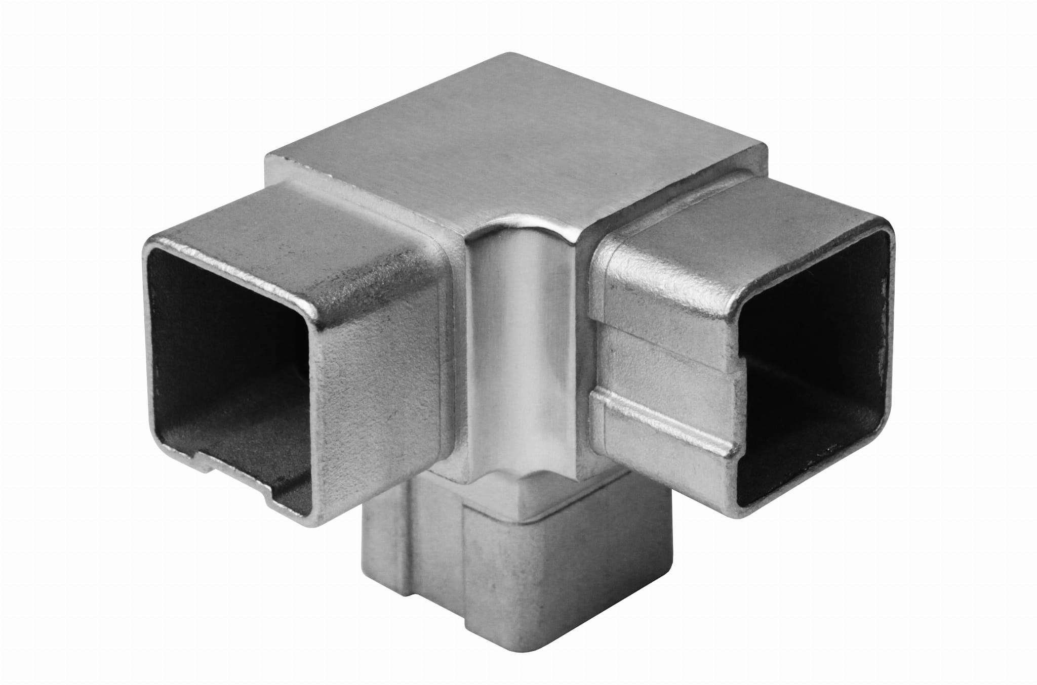 Raccord trois départs pour profilé 40x40 x2 mm, AISI 304, brossé